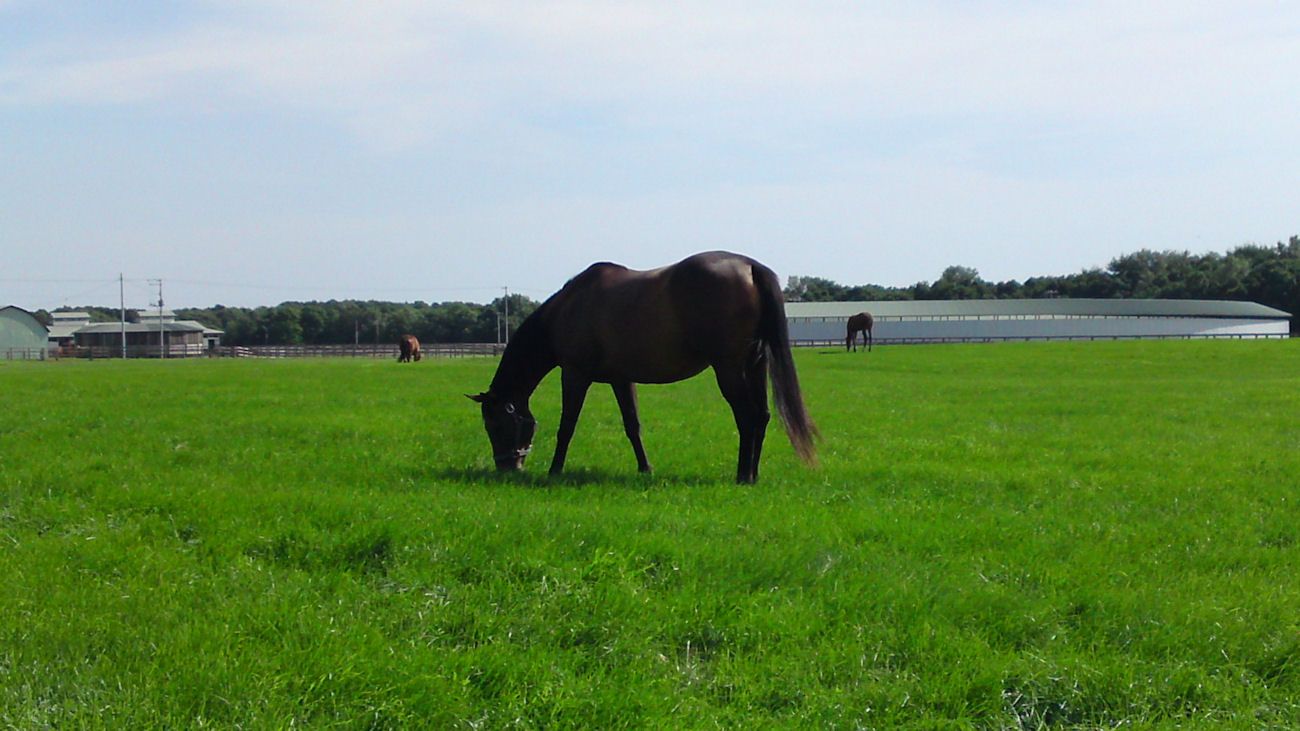 このあたりは競走馬の産地で、馬の牧場もいっぱいありました。競馬場でおなじみのサラブレッドたちも、ここではのんびりと草を食んでいます。