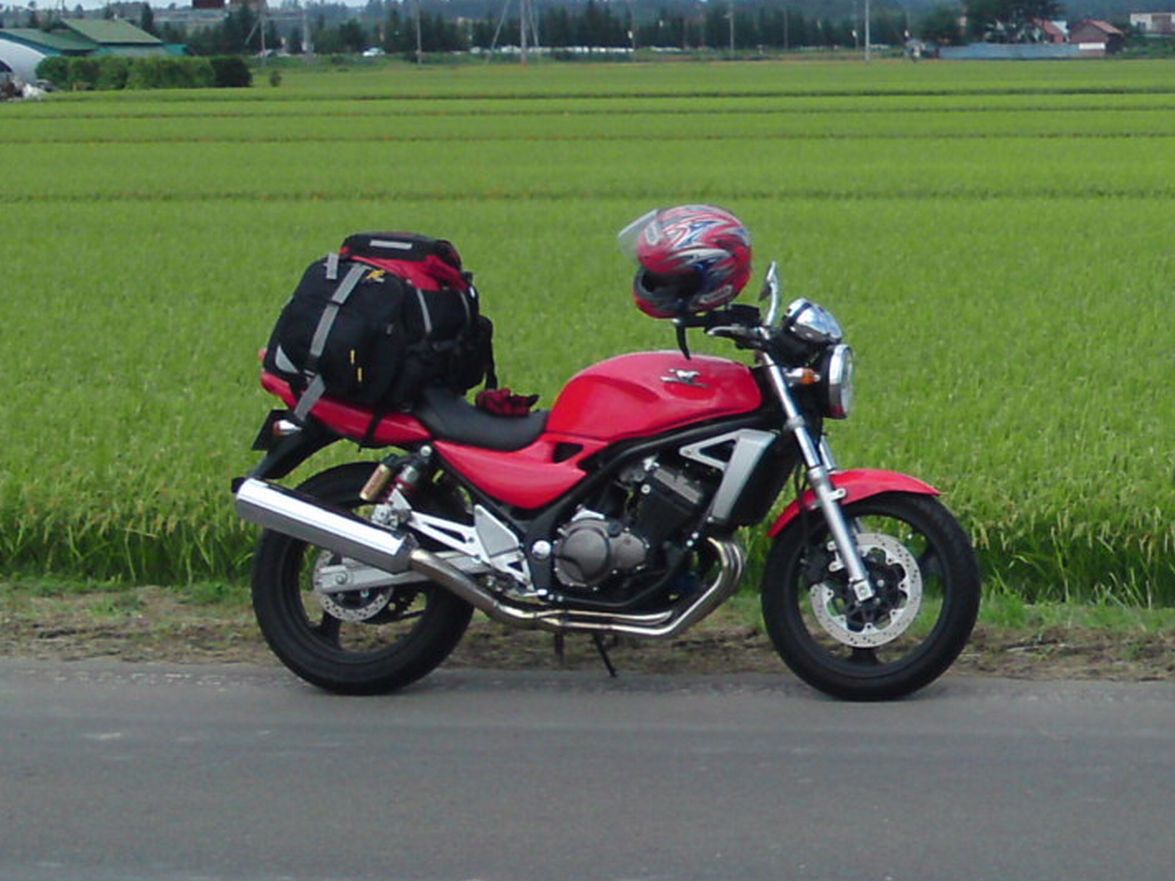 茨城に越してきて、車の免許と同時に中型をとり、このバイクを買いました。常磐道で170kを出して怖かったです。(^_^.)